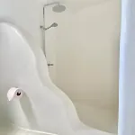 A Villa Ruffi Mykonos ablakai a tengerre néznek. A Mykonos Town városi ingatlan egy külön WC-vel és zuhanyzóval felszerelt fürdőszobával rendelkezik. Hajszárító és fürdőlepedők szintén elérhető.